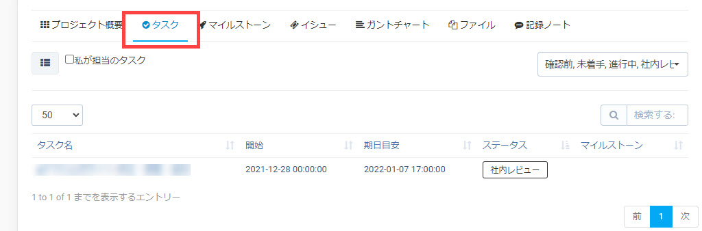 依頼内容が固まったら、弊社にてタスク化します。タスクには開始日と期日が設定され、いつ開始し、完了になるかを一目で確認できます。
